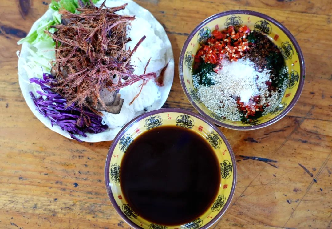 Fresh beef and chives are minced together, then seasoned with salt, cilantro, bird’s eye chili, and other spices, and thoroughly mixed. Then, the filtered coffee is introduced; the rich, aromatic coffee liquid is poured into this mixture until fully incorporated. This unique concoction serves as a dipping sauce for rice noodles, oil-drizzled dried beef strips, grilled beef liver, and raw cabbage. With each bite, the palate encounters a symphony of sour, sweet, bitter, and spicy notes, creating a truly complex and multi-layered experience.