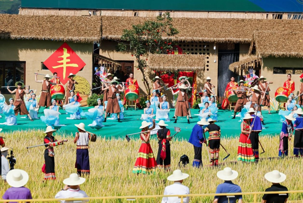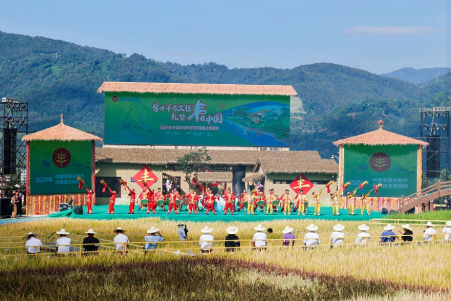 A performance is staged for the 2024 Chinese Farmers’ Harvest Festival in southwest Yunnan’s Longling county on Sept.22. (Photo provided by Yunnan Provincial Department of Agriculture and Rural Affairs)