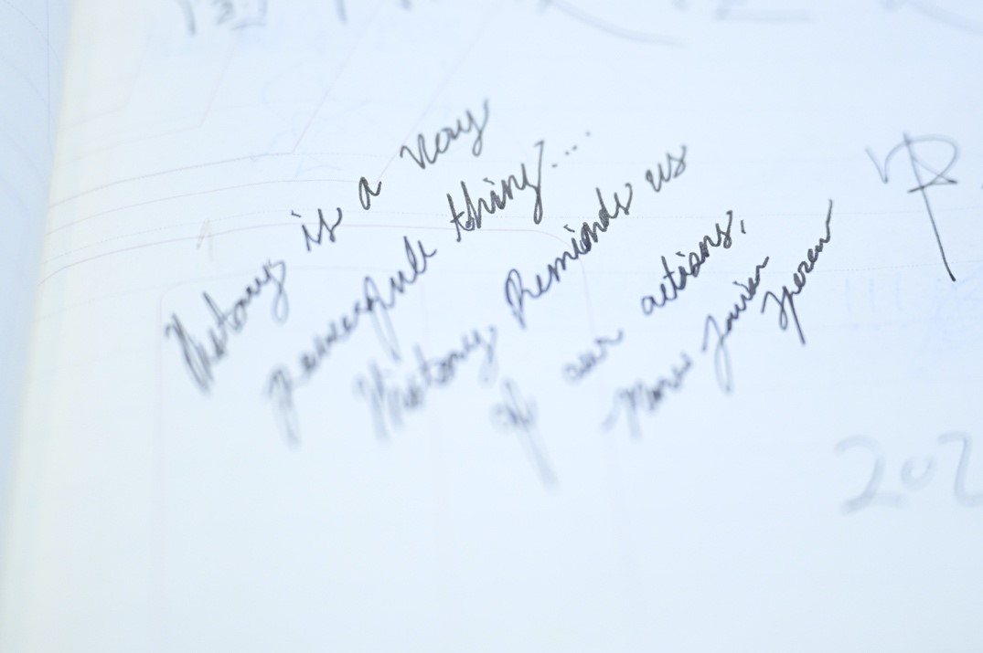 At the Flying Tigers Memorial Hall, the guestbook was filled with heartfelt messages from visitors. Camper Marco wrote down his thought in English: "History is a very powerful thing… History reminds us of our actions."