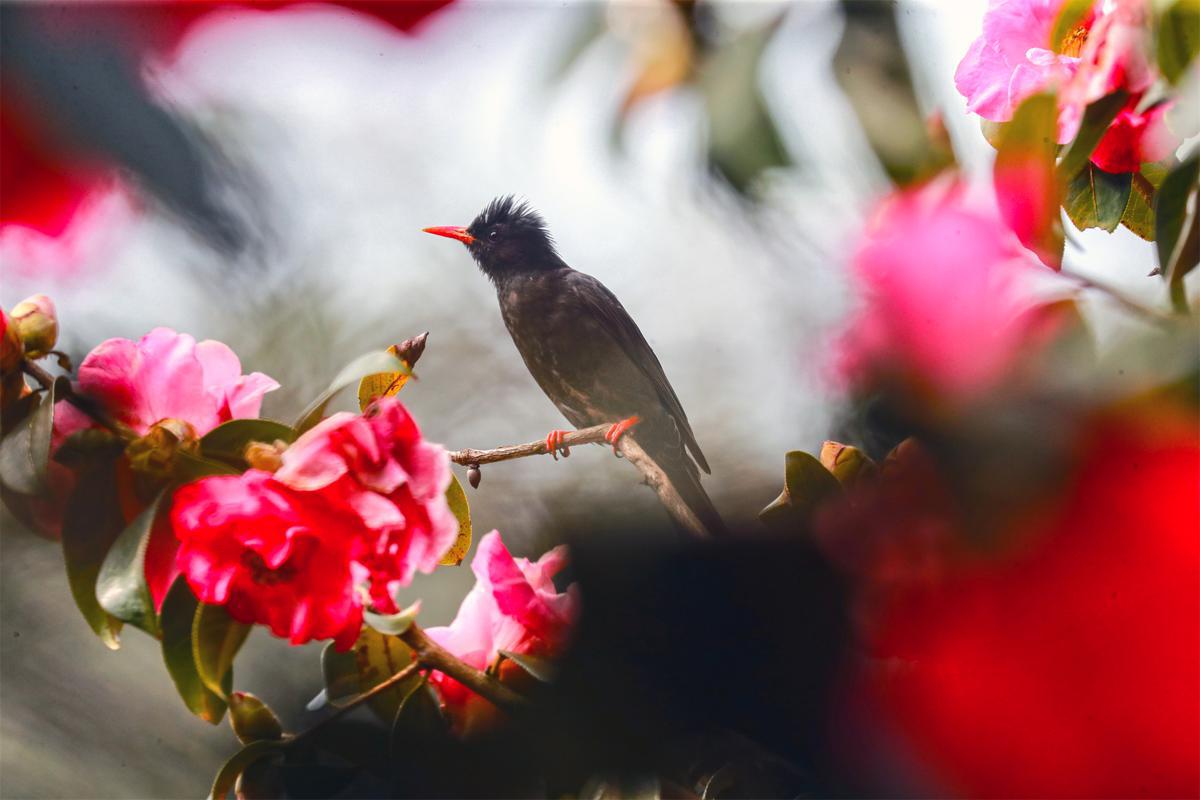 AbirdperchesonabranchofcamelliablossomsatLaifengshanNationalForestParkinTengchong,Yunnanprovince.[PhotobyLiuZhengfan/Forchinadaily.com.cn]Luredbythefloralaroma,birdsflitanddartamongthebranches,skillfullydippingtheirbeaksintotheblossomstosipnectar.Theircrispcallsechothroughtheforest,breathinglifeintospring.