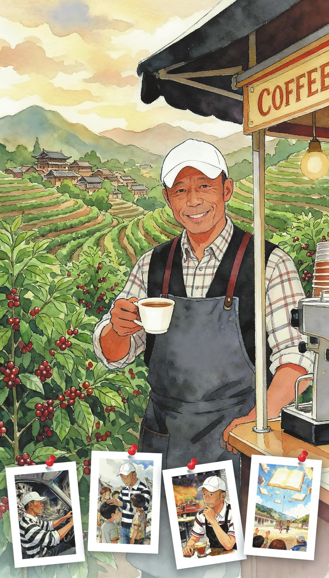 Hisjourneybeganintheaftermathofthe2008Wenchuanearthquake,whenhespentweeksconductingrescueoperationsafterthemagnitude8.0disasterstruckSichuanprovince,killingnearly70,000peopleandleavinganother18,000unaccountedfor.Whenorphanedchildrenaskedwhenhewouldreturn,thequestionstayedwithhim.Hesoldhiscarandproperty,movedtoChengduandopenedatinycoffeestallnamed"Ding'sCoffee"—whichmeans"certainly"—tofulfillhiscommitmenttothechildren.
