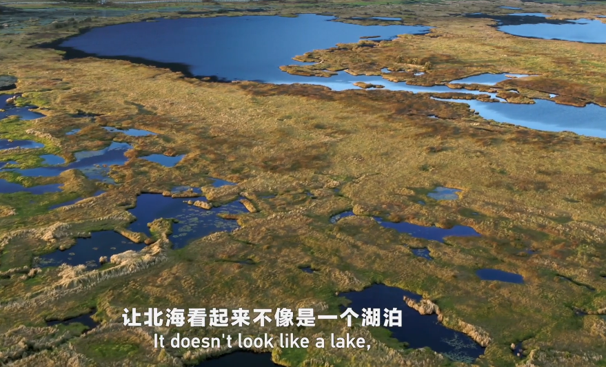 Mostly covered with grass, Beihai Lake looks like a stretch of grassland floating on the water. The wetland expects more wading birds to come and join this vibrant avian party.